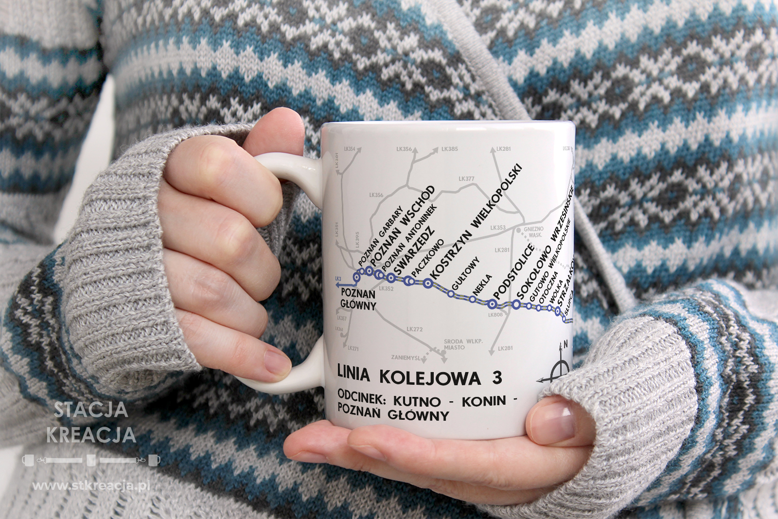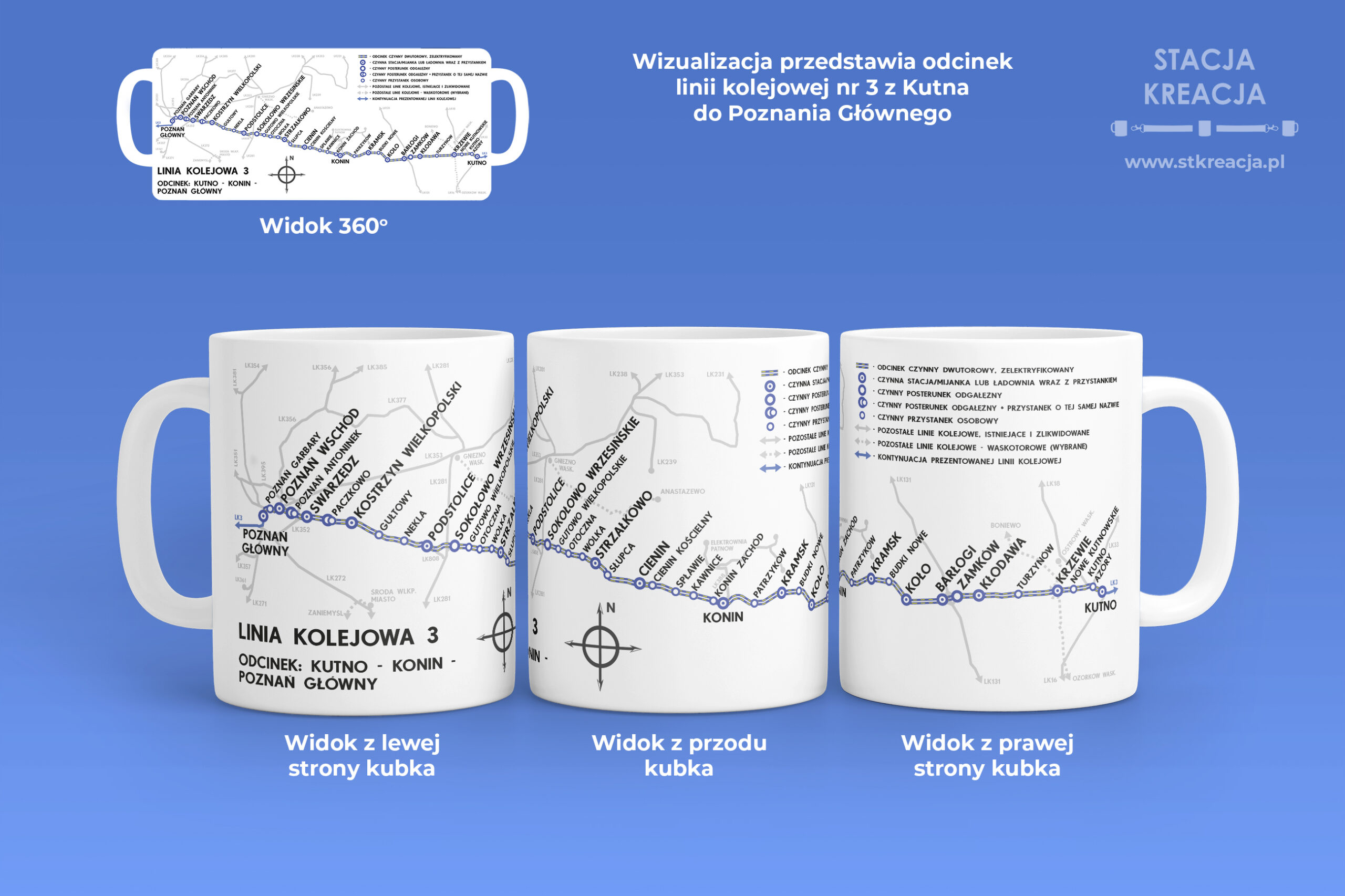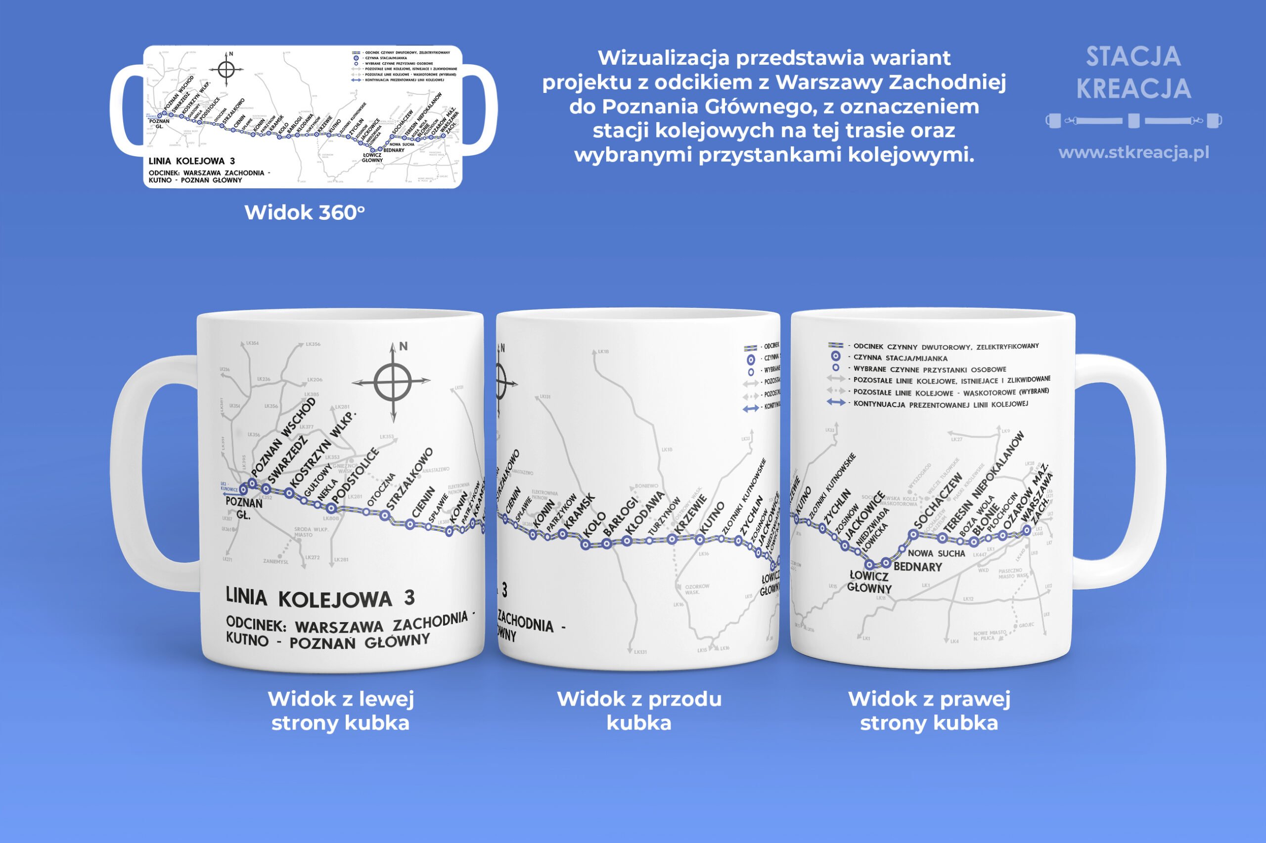 Linia kolejowa 3 – Warszawa Zachodnia – Kutno – Poznań Główny – Kunowice, Linia nr 3. Przedstawiamy kubek kolejowy z naszej serii „Linie Kolejowe”. Jest to seria kubków, na której prezentujemy schematyczne mapki linii kolejowych występujących w naszym kraju. Idealny gadżet, upominek dla fanów kolei i nie tylko.