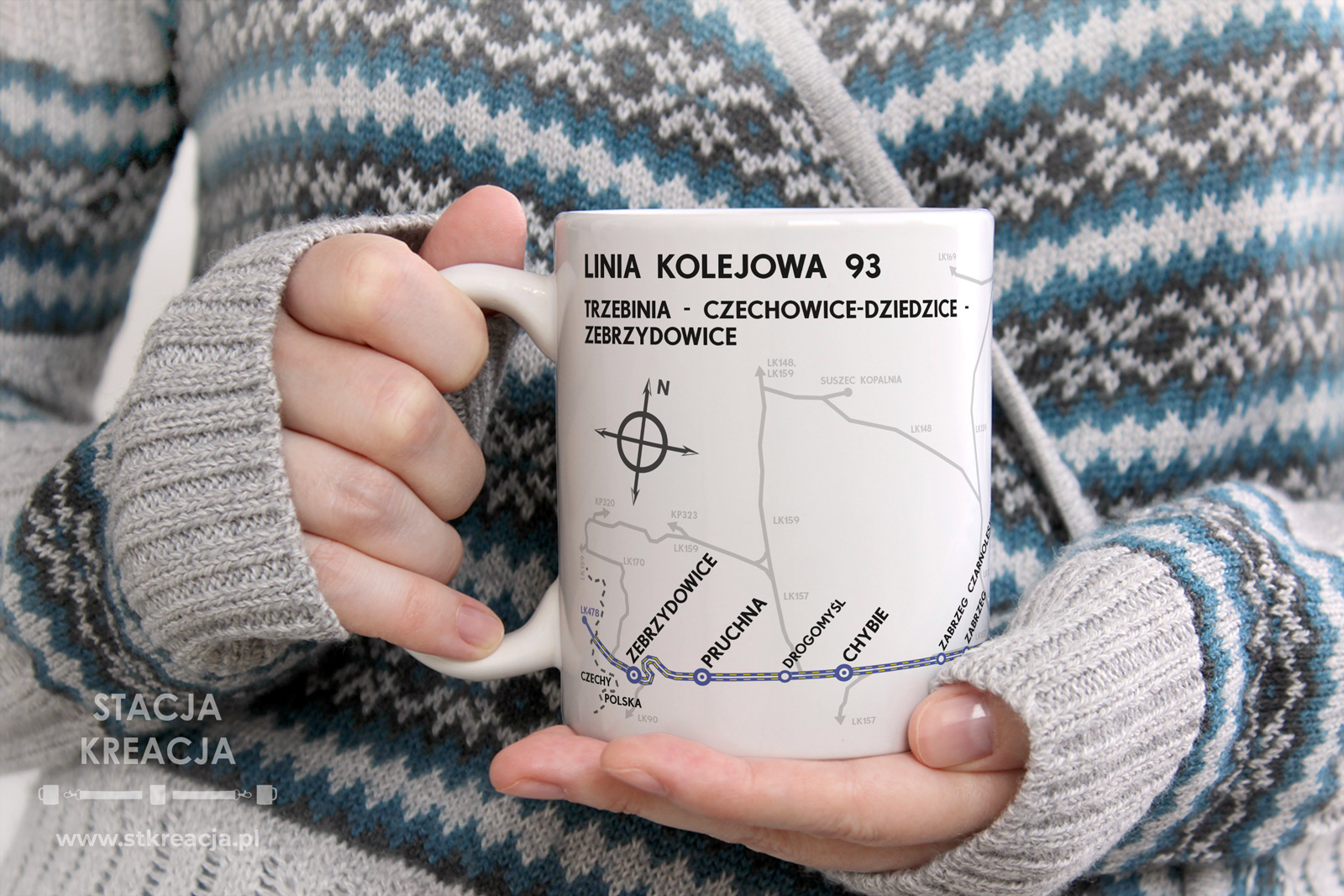 Linia kolejowa 93 – Trzebinia – Zebrzydowice. Przedstawiamy kubek kolejowy z naszej serii „Linie Kolejowe”. Jest to seria kubków, na której prezentujemy schematyczne mapki linii kolejowych występujących w naszym kraju. Wzór kubka jest niebanalny i interesujący, co na pewno przykuje uwagę każdego, kto go zobaczy.