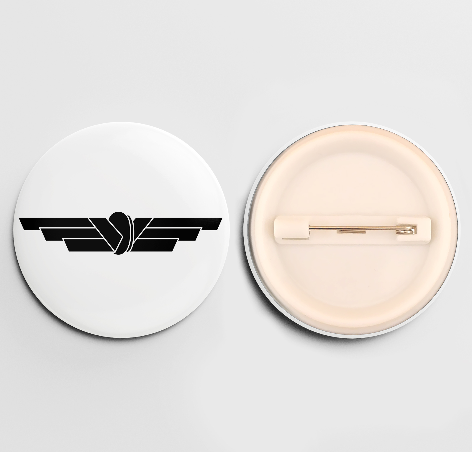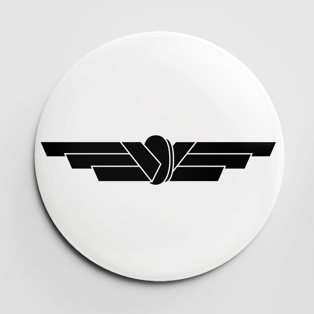 - Motyw grafiki na przypince/buttonie to: czarna ośka kolejowa PRL wzorowana na jednym z wzorów powojennych, białe tło.